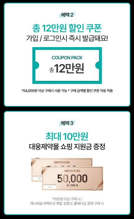 하루 2알이면 필요한 영양소를 한 번에, 지금은 최대 61% 할인에 12만원 쿠폰 혜택까지 받아볼 수 있는 좋은 기회입니다.