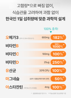 - 지용성 비타민 포함으로 식후 섭취 시 흡수율 상승