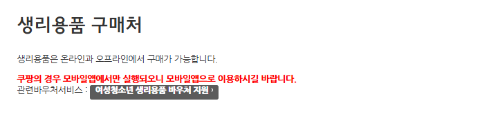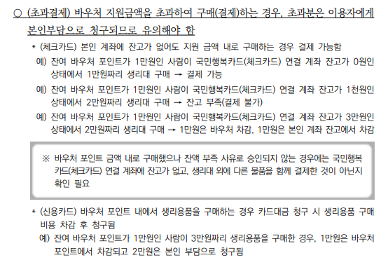 생리대 바우처 사용 시 유의사항