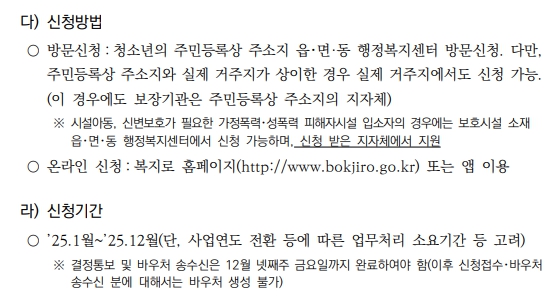 ✅ 본인, 부모님, 보호자(후견인·시설장 등)도 신청 가능