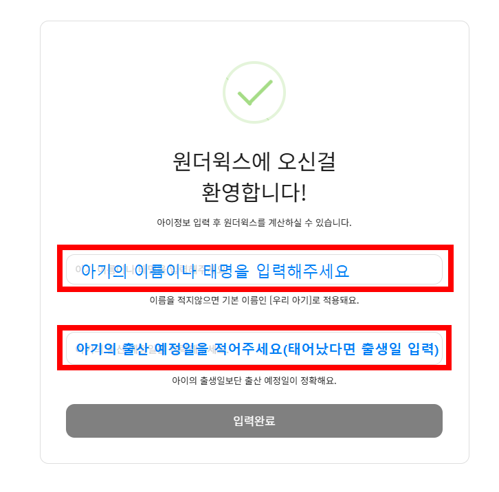 1. 위 사이트에 접속 후 아기의 이름이나 태명을 입력해주세요.