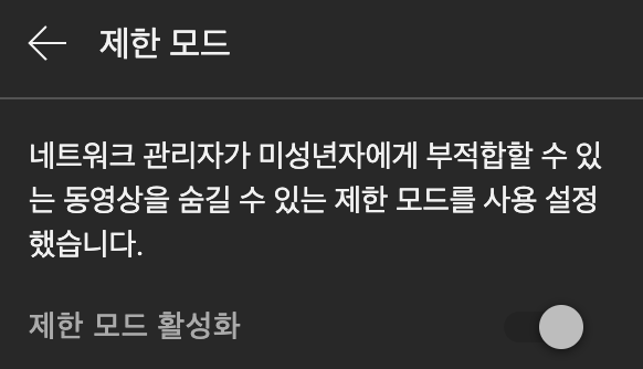 - 유튜브 일부 영상이 제한 모드로 인해 재생 불가