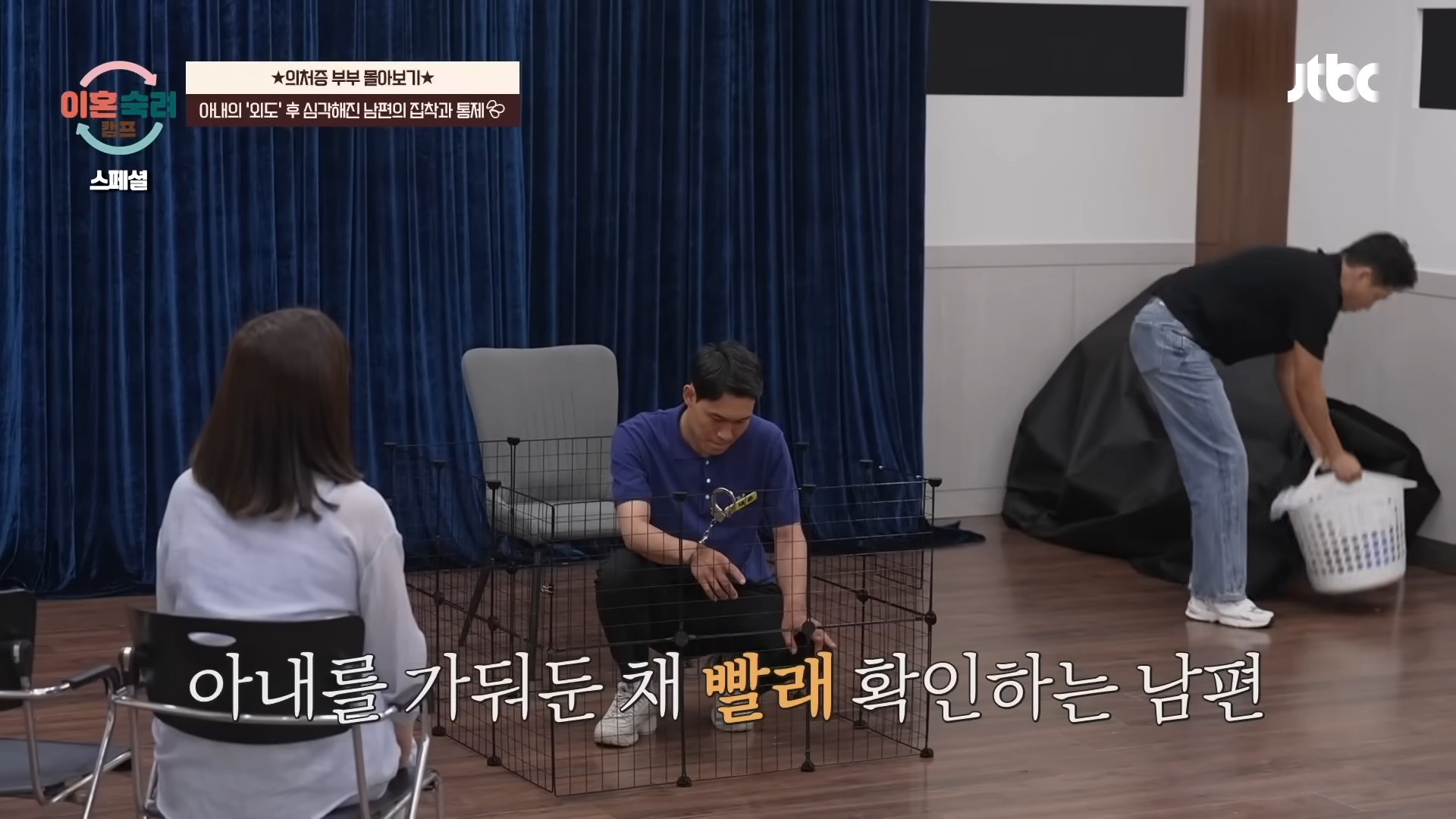 첫번째 심리극에서 조재훈 씨는 아내 입장이 되어 철창 속에 갇히고, 수갑이 채워진 채 생활하는 체험을 하게 됩니다.