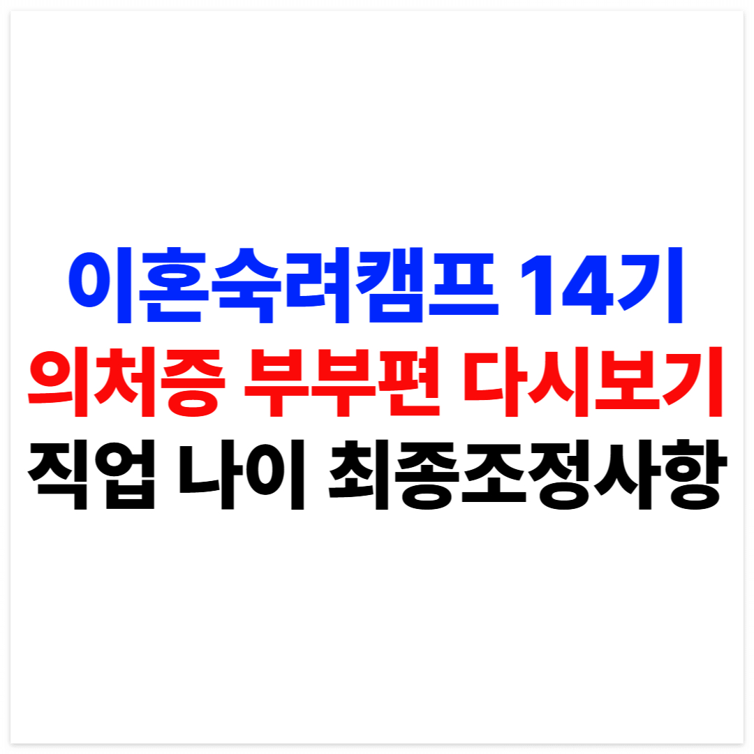 오늘 포스팅에서는 이혼숙려캠프 14기 의처증 부부 다시보기 링크, 남편 조재훈 씨의 나이, 직업, 그리고 최종 조정사항까지 모든 정보를 한눈에 정리해드립니다.